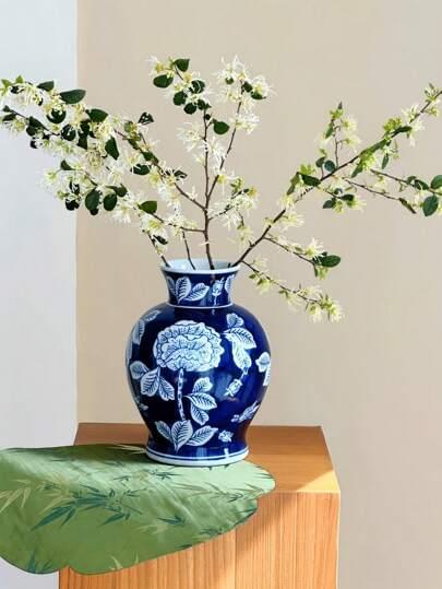 ف فازة خزف قديم الطراز باللون الأزرق الغامق والأبيض